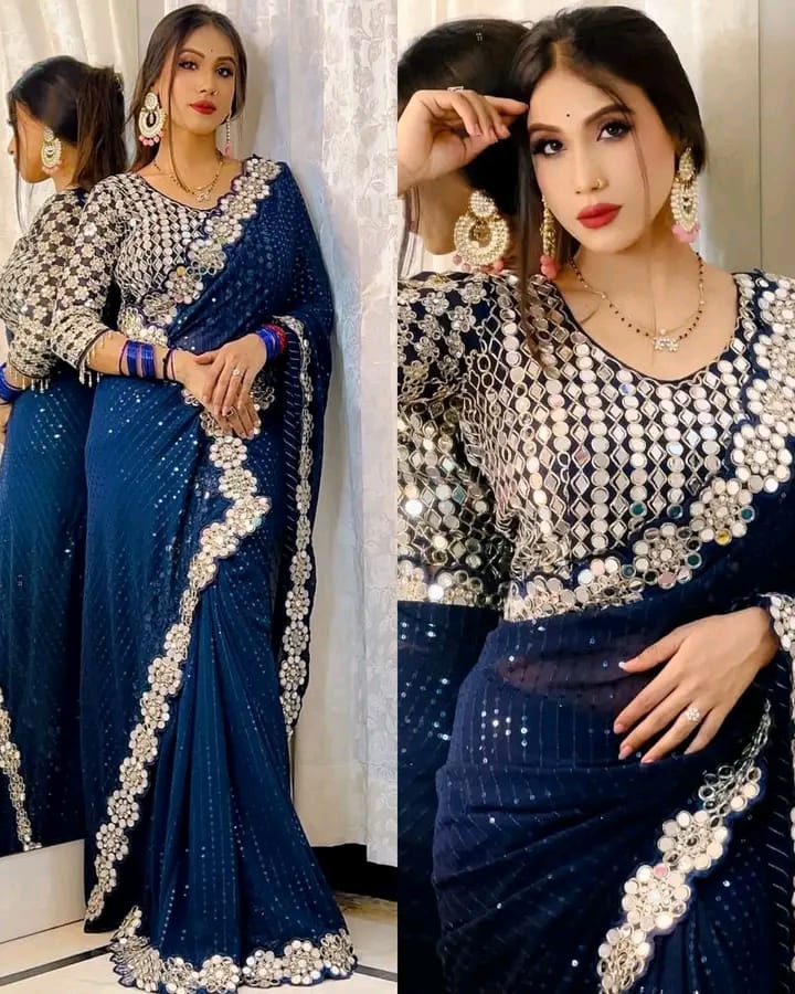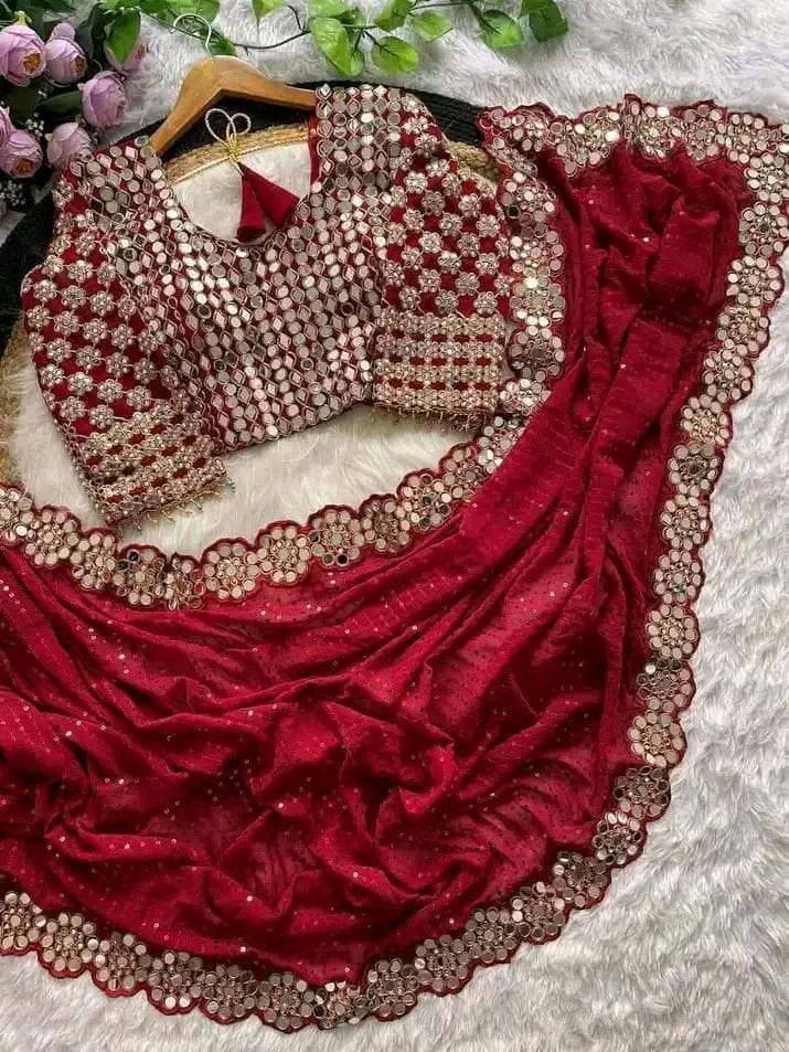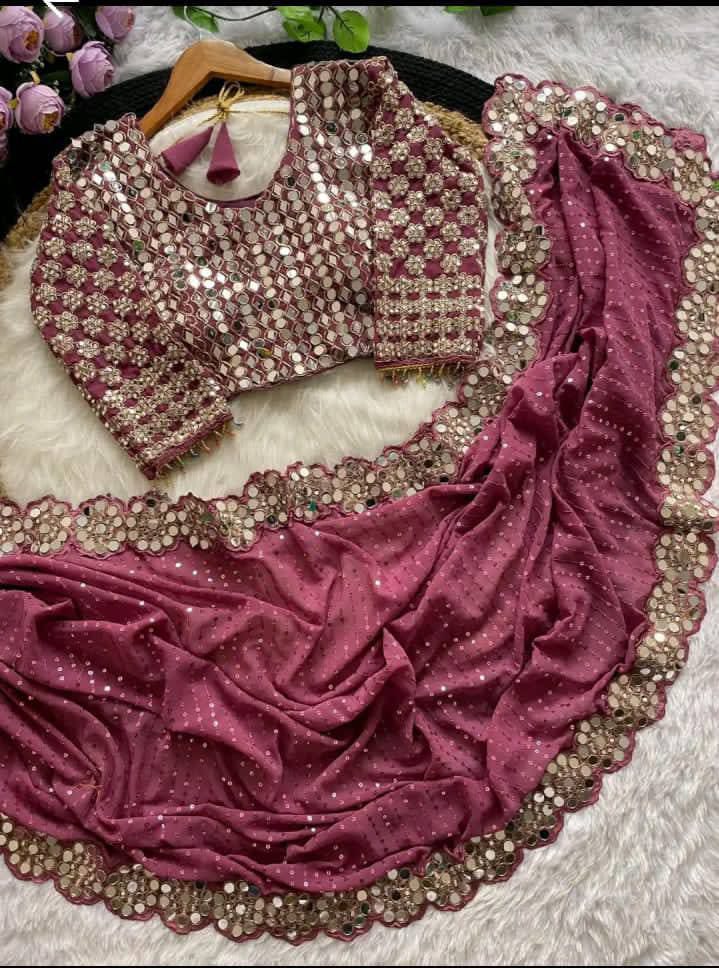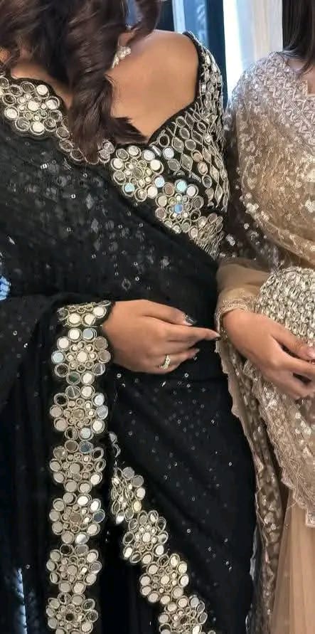 ✅শাড়ির কাজ : ফুল শাড়ী এবং ব্লাউজ অরিজিনাল মিরোর ওয়ার্ক, পাথর বসানো এবং সিকুয়েন্স এর কাজ করা।❤