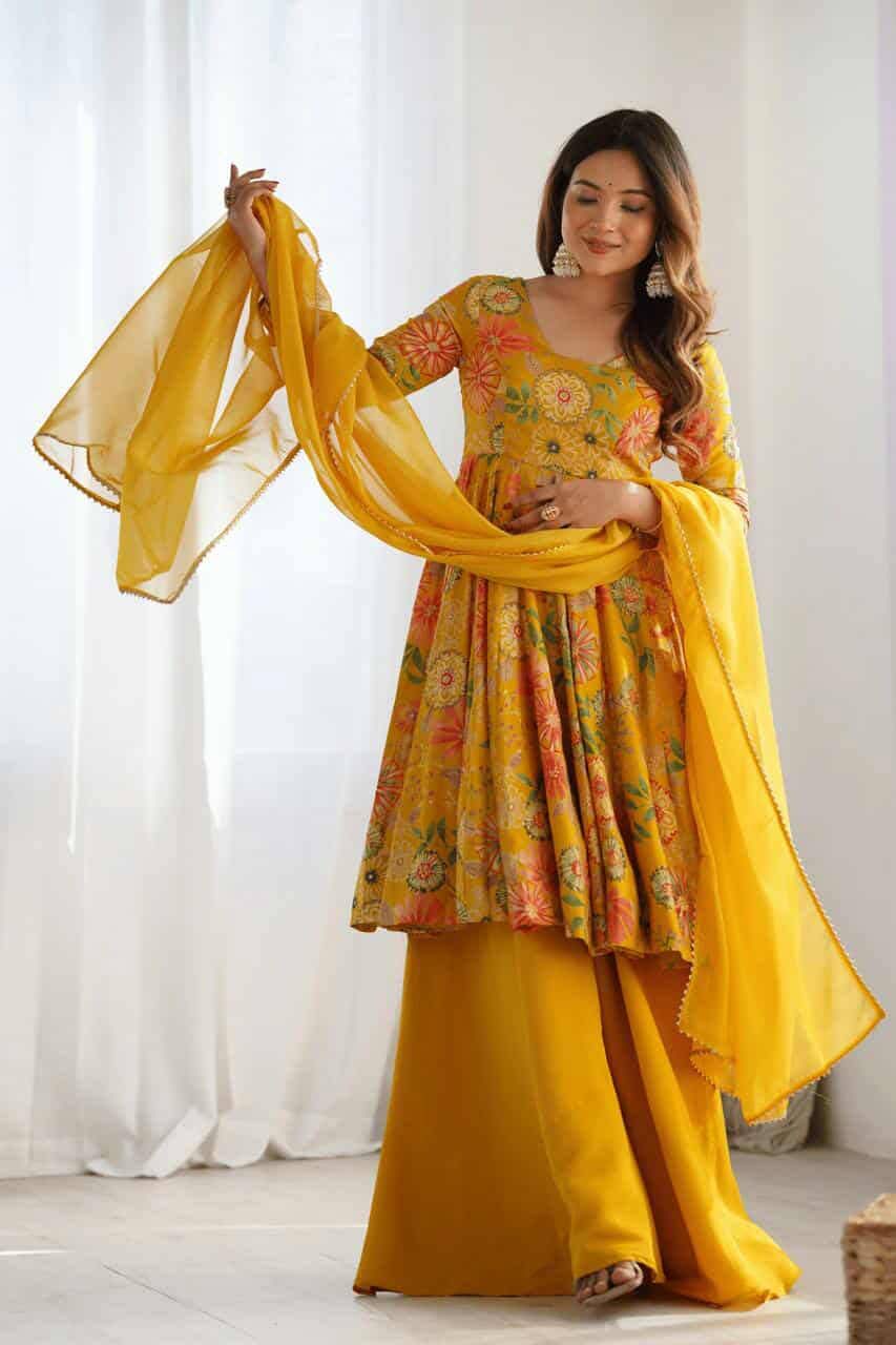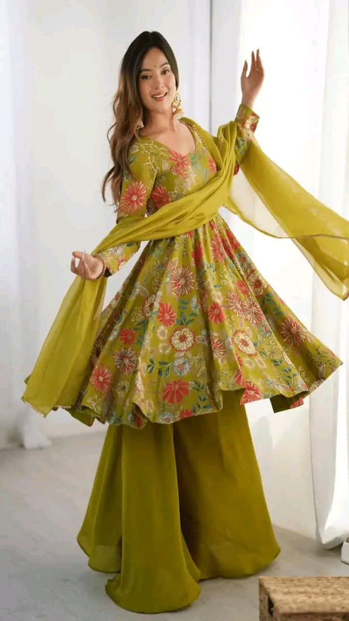 কেদিয়া স্টাইল কুর্তি, প্লাজো এবং দুপাট্টা সেট